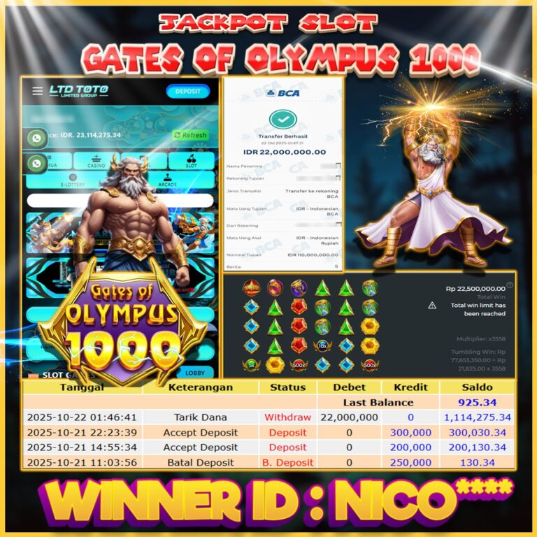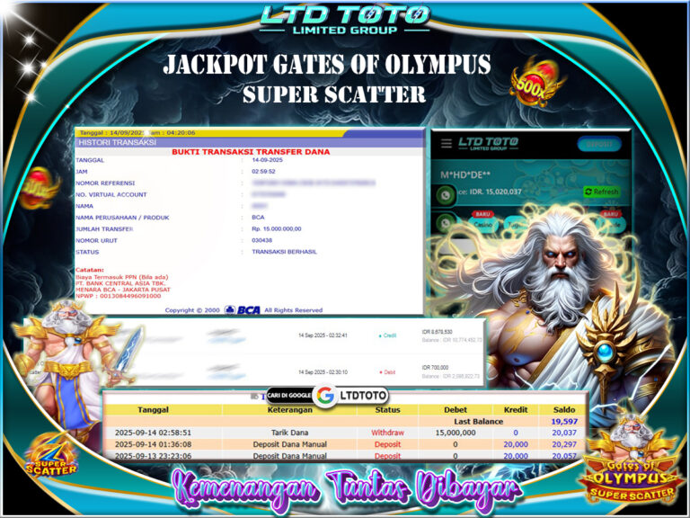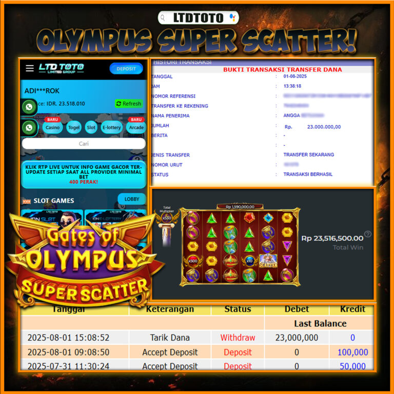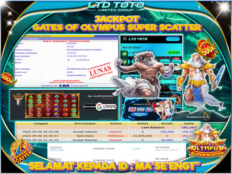 LTDTOTO JACKPOT SLOT GATES OF OLYMPUS SUPER SCATTER RP 23.000.000 SELASA 23 SEPTEMBER 2025 Selamat kepada User id : SO*UR***Telah berhasil mendapatkan kemenangan besar pada permainan SLOT GATES OF OLYMPUS SUPER SCATTER , kemenangan Sebesar Rp.23.000.000, Setelah mengisi formulir withdraw dengan kurang waktu hanya 5 – 10 menit pihak LTDTOTO sudah melakukan transfer kepada pemilik User id dan dana…