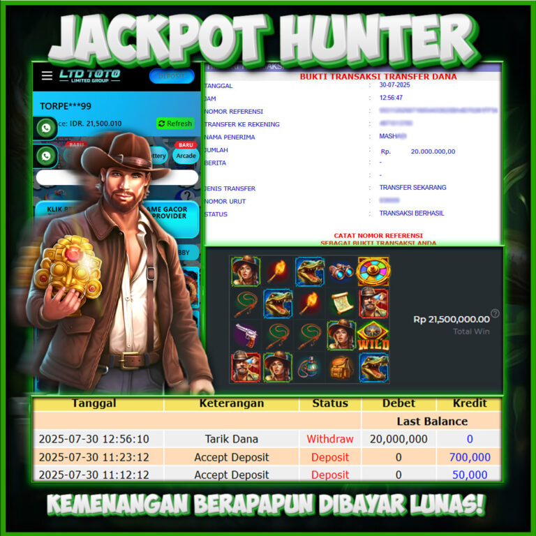 LTDTOTO JACKPOT SLOT HUNTER RP 20.000.000 RABU 30 JULY 2025 Selamat kepada User id : TORPE***99 Telah berhasil mendapatkan kemenangan besar pada permainan JACKPOT HUNTER, kemenangan Sebesar Rp.20.000.000, Setelah mengisi formulir withdraw dengan kurang waktu hanya 5 – 10 menit pihak LTDTOTO sudah melakukan transfer kepada pemilik User id dan dana sudah dapat di cairkan oleh pemenang….