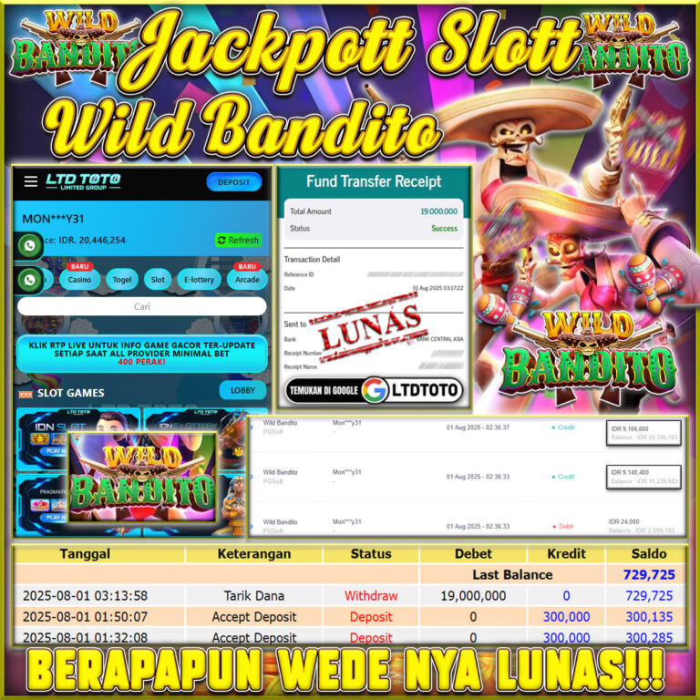 LTDTOTO JACKPOT WILD BANDITO RP 19.000.000 DI BAYAR LUNAS!