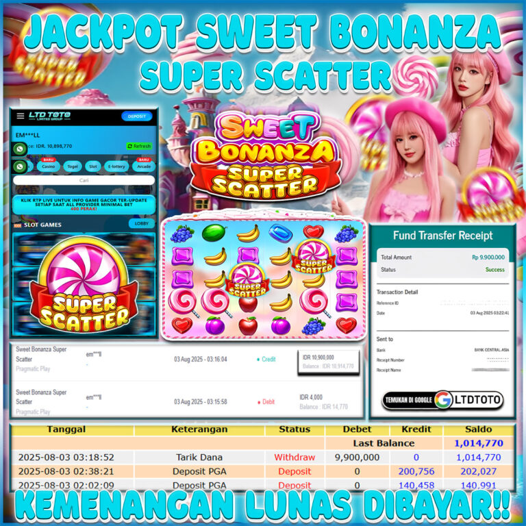 LTDTOTO JACKPOT BONANZA SUPER SCATTER RP 9.900.000 MINGGU 03 AUGUST 2025 Selamat kepada User id : EM***LL Telah berhasil mendapatkan kemenangan besar pada permainan SWEET BONANZA SUPER SCATTER, kemenangan Sebesar Rp.9.900.000, Setelah mengisi formulir withdraw dengan kurang waktu hanya 5 – 10 menit pihak LTDTOTO sudah melakukan transfer kepada pemilik User id dan dana sudah dapat di…