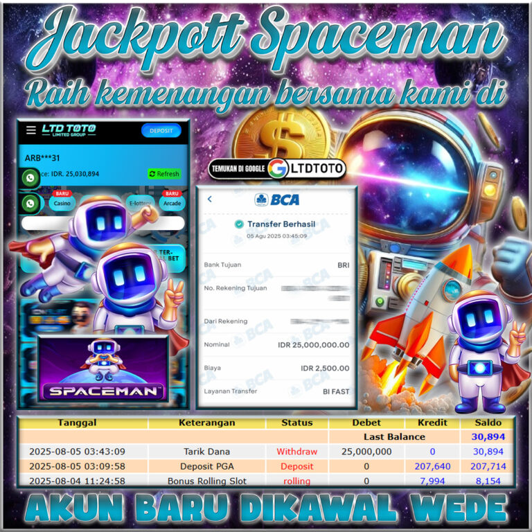 LTDTOTO JACKPOT SPACEMAN RP 25.000.000 SELASA 05 AUGUST 2025 Selamat kepada User id : ARB***31 Telah berhasil mendapatkan kemenangan besar pada permainan SPACEMAN, kemenangan Sebesar Rp.25.000.000, Setelah mengisi formulir withdraw dengan kurang waktu hanya 5 – 10 menit pihak LTDTOTO sudah melakukan transfer kepada pemilik User id dan dana sudah dapat di cairkan oleh pemenang. Bukti pembayaran…