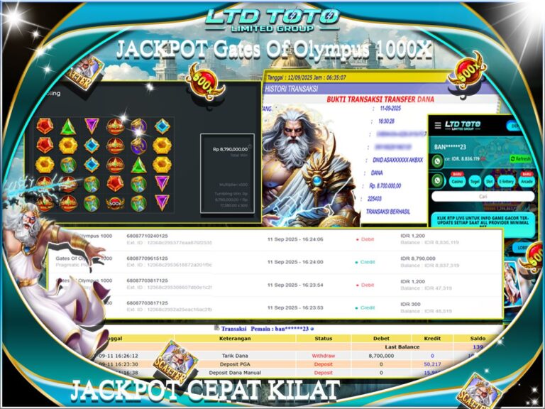 LTDTOTO JACKPOT GATES OF OLYMPUS 1000 RP 12.002.000 SABTU 01 NOVEMBER 2025 Selamat kepada User id : JUST*** Telah berhasil mendapatkan kemenangan besar pada permainan SLOT GATES OF OLYMPUS 1000 , kemenangan Sebesar Rp.12.002.000, Setelah mengisi formulir withdraw dengan kurang waktu hanya 5 – 10 menit pihak LTDTOTO sudah melakukan transfer kepada pemilik User id dan dana sudah…