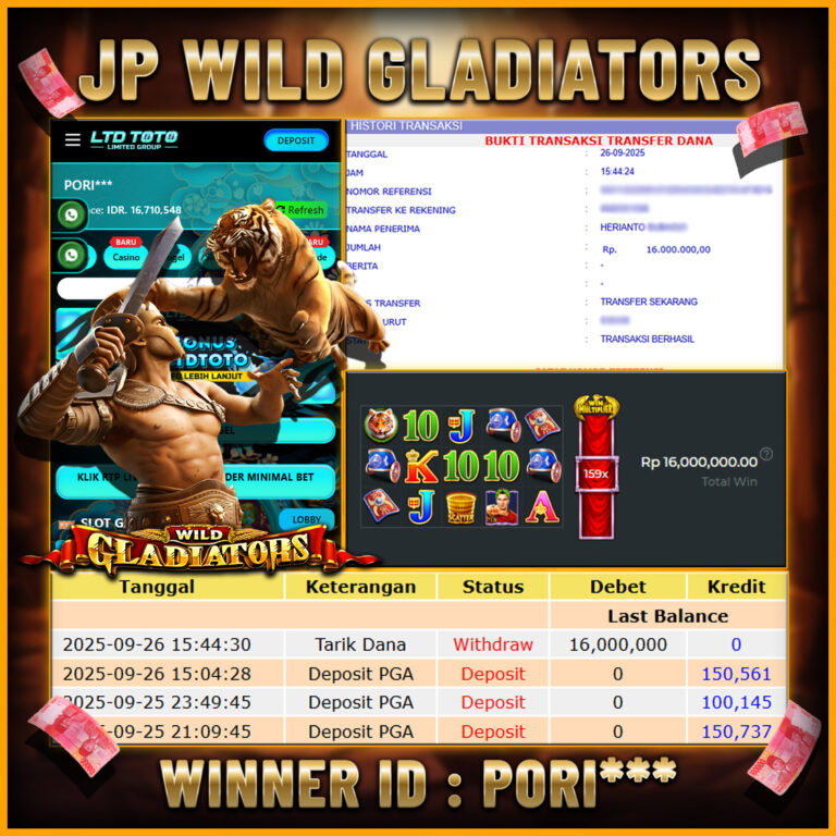 LTDTOTO JACKPOT SLOT WILD GLADIATORS RP 16.000.000 JUMAT 26 SEPTEMBER 2025 Selamat kepada User id : PORI*** Telah berhasil mendapatkan kemenangan besar pada permainan SLOT WILD GLADIATORS , kemenangan Sebesar Rp.16.000.000, Setelah mengisi formulir withdraw dengan kurang waktu hanya 5 – 10 menit pihak LTDTOTO sudah melakukan transfer kepada pemilik User id dan dana sudah dapat di cairkan oleh…