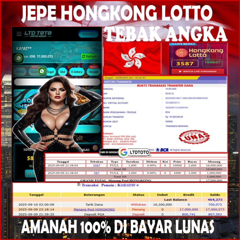 LTDTOTO JACKPOT TOGEL HONGKONG LOTTO RP 17.000.000 MINGGU 23 NOVEMBER 2025 Selamat kepada User id : DRA*O*** Telah berhasil mendapatkan kemenangan besar pada permainan TOGEL HONGKONG LOTTO , kemenangan Sebesar Rp.17.000.000, Setelah mengisi formulir withdraw dengan kurang waktu hanya 5 – 10 menit pihak LTDTOTO sudah melakukan transfer kepada pemilik User id dan dana sudah dapat di cairkan…