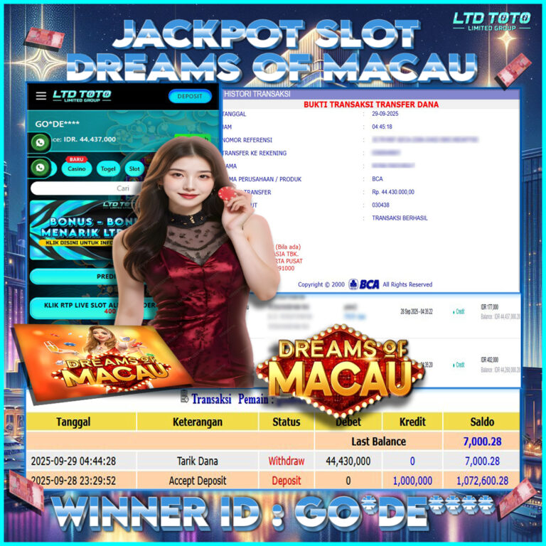 LTDTOTO JACKPOT SLOT DREAMS OF MACAU RP 44.430.000 DI BAYAR LUNAS!