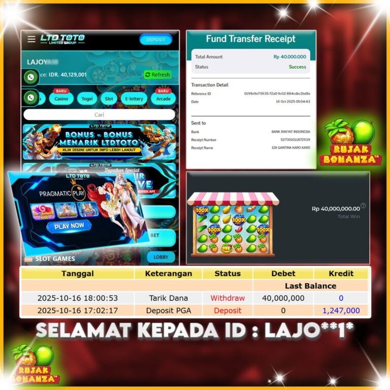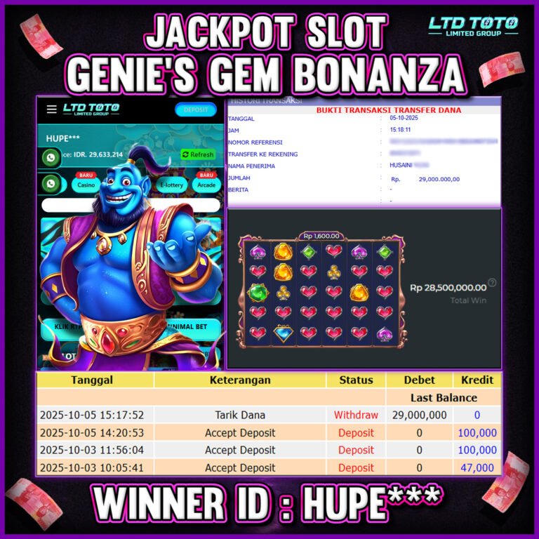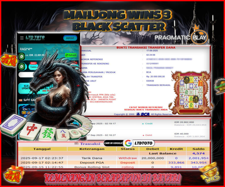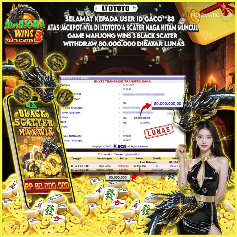 LTDTOTO JACKPOT SLOT MAHJONG WINS 3 BLACK SCATTER RP 20.000.000 RABU 17 SEPTEMBER 2025 Selamat kepada User id : RAGI*4** Telah berhasil mendapatkan kemenangan besar pada permainan MAHJONG WINS 3 BLACK SCATTER , kemenangan Sebesar Rp.20.000.000, Setelah mengisi formulir withdraw dengan kurang waktu hanya 5 – 10 menit pihak LTDTOTO sudah melakukan transfer kepada pemilik User id dan dana…