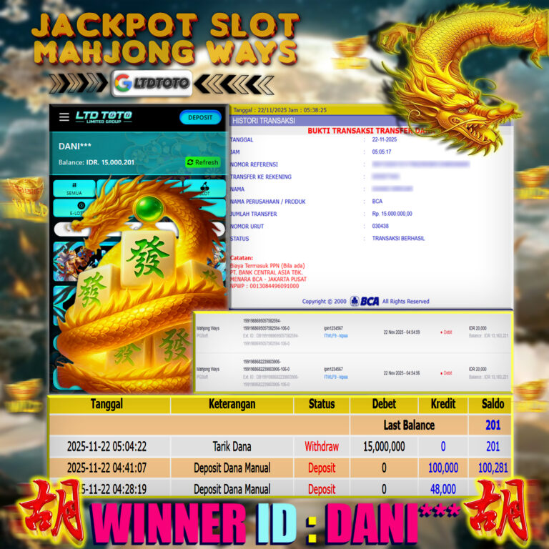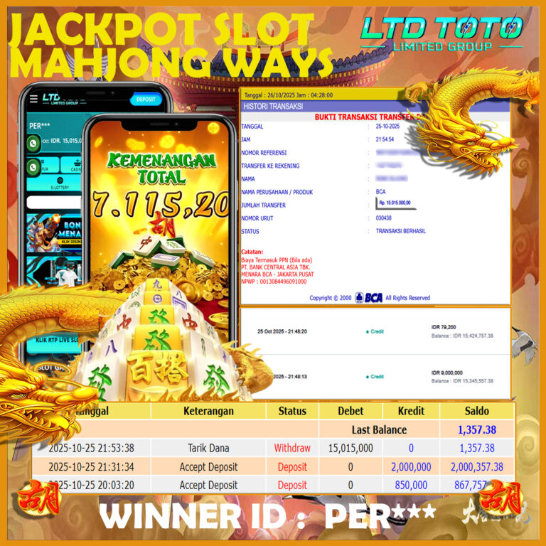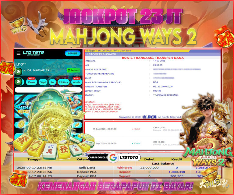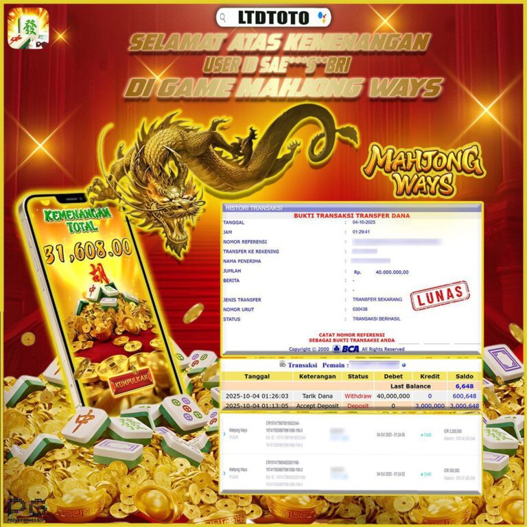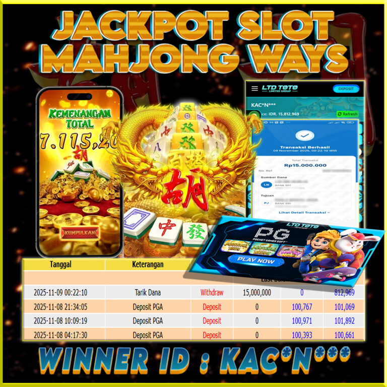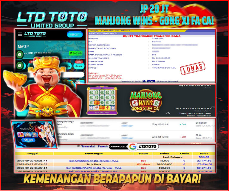 LTDTOTO JACKPOT SLOT MAHJONG WINS GONG XI FA CAI RP 20.000.000 SENIN 22 SEPTEMBER 2025 Selamat kepada User id : MA*Z**Telah berhasil mendapatkan kemenangan besar pada permainan SLOT MAHJONG WINS GONG XI FA CAI , kemenangan Sebesar Rp.20.000.000, Setelah mengisi formulir withdraw dengan kurang waktu hanya 5 – 10 menit pihak LTDTOTO sudah melakukan transfer kepada pemilik User id…