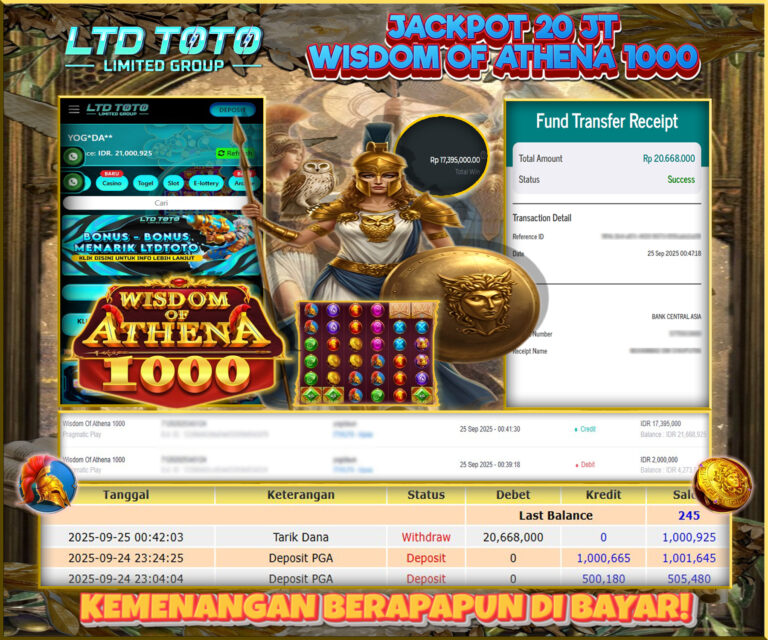 LTDTOTO JACKPOT SLOT WISDOM OF ATHENA 1000 RP 20.000.000 DI BAYAR LUNAS!