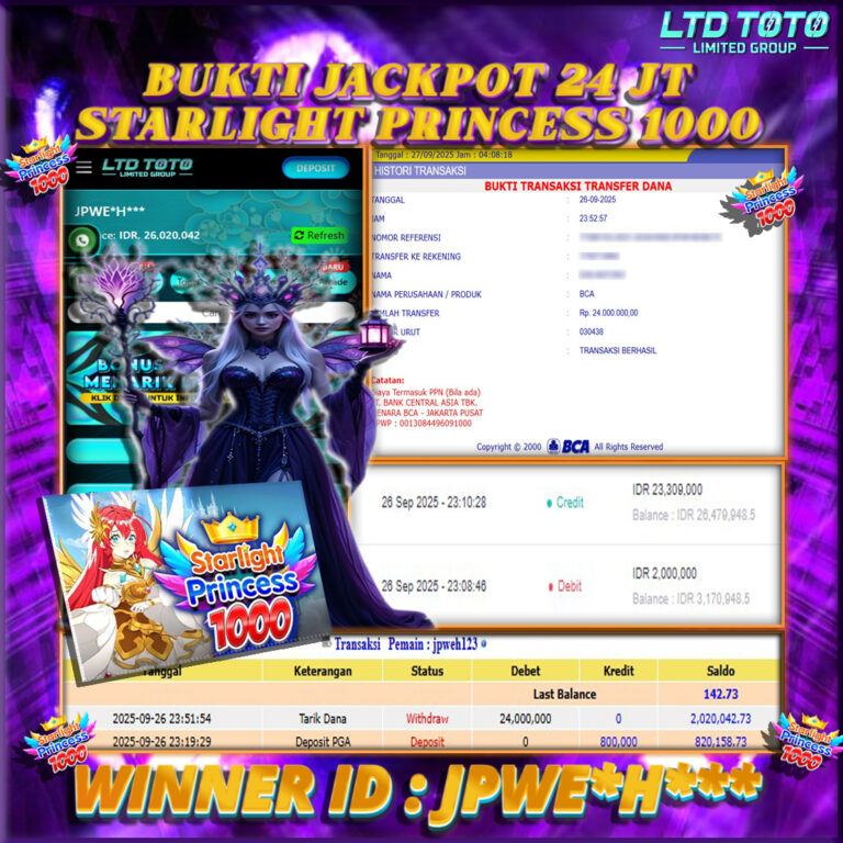 LTDTOTO JACKPOT SLOT STARLIGHT PRINCESS 1000 RP 24.000.000 SABTU 27 SEPTEMBER 2025 Selamat kepada User id : JPWE*H*** Telah berhasil mendapatkan kemenangan besar pada permainan SLOT STARLIGHT PRINCESS 1000 , kemenangan Sebesar Rp.24.000.000, Setelah mengisi formulir withdraw dengan kurang waktu hanya 5 – 10 menit pihak LTDTOTO sudah melakukan transfer kepada pemilik User id dan dana sudah dapat di…
