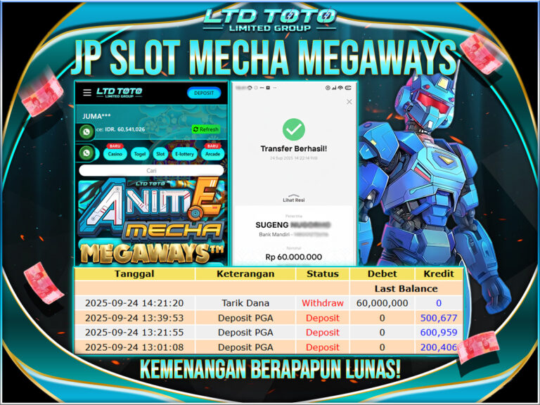 LTDTOTO JACKPOT SLOT OISHI DELIGHTS RP 60.000.000 RABU 24 SEPTEMBER 2025 Selamat kepada User id : JUMA*** Telah berhasil mendapatkan kemenangan besar pada permainan SLOT ANIME MECHA MEGAWAYS , kemenangan Sebesar Rp.60.000.000, Setelah mengisi formulir withdraw dengan kurang waktu hanya 5 – 10 menit pihak LTDTOTO sudah melakukan transfer kepada pemilik User id dan dana sudah dapat di cairkan…