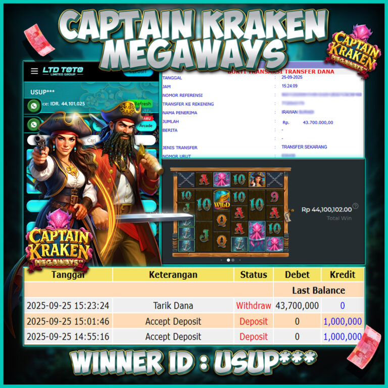 LTDTOTO JACKPOT SLOT CAPTAIN KRAKEN MEGAWAYS RP 43.700.000 DI BAYAR LUNAS!