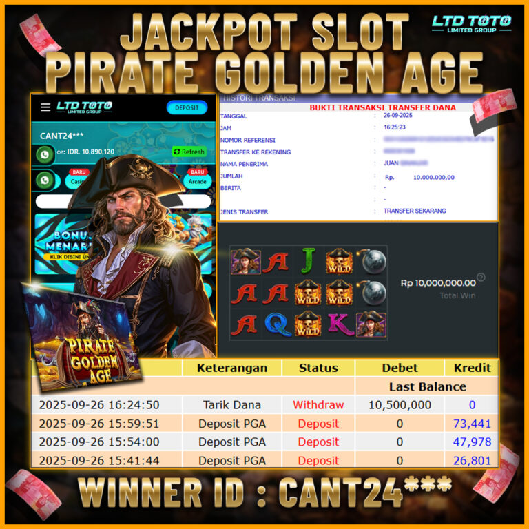 LTDTOTO JACKPOT SLOT PIRATE GOLDEN AGE RP 10.500.000 JUMAT 26 SEPTEMBER 2025 Selamat kepada User id : CANT24*** Telah berhasil mendapatkan kemenangan besar pada permainan SLOT PIRATE GOLDEN AGE , kemenangan Sebesar Rp.10.500.000, Setelah mengisi formulir withdraw dengan kurang waktu hanya 5 – 10 menit pihak LTDTOTO sudah melakukan transfer kepada pemilik User id dan dana sudah dapat di…