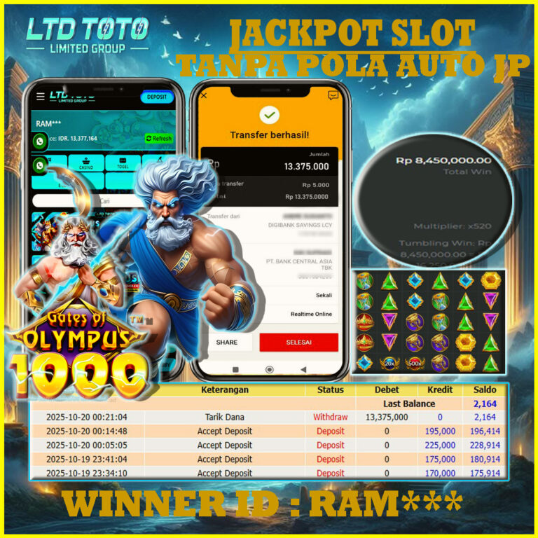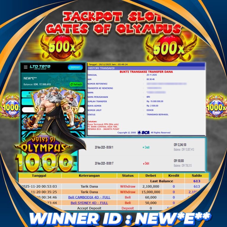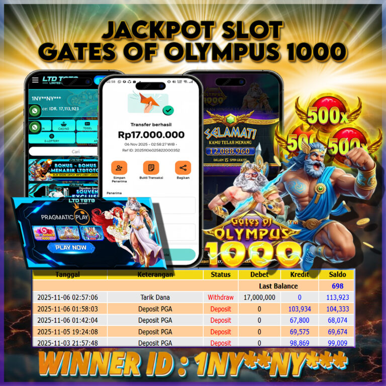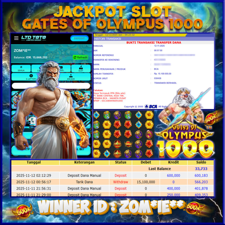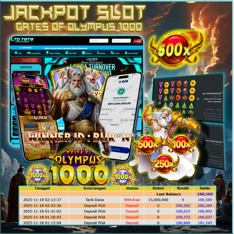 LTDTOTO JACKPOT GATES OF OLYMPUS 1000 RP 15.100.000 RABU 12 NOVEMBER 2025 Selamat kepada User id : ZOM*IE** Telah berhasil mendapatkan kemenangan besar pada permainan SLOT GATES OF OLYMPUS 1000 , kemenangan Sebesar Rp.15.100.000 , Setelah mengisi formulir withdraw dengan kurang waktu hanya 5 – 10 menit pihak LTDTOTO sudah melakukan transfer kepada pemilik User id dan dana…