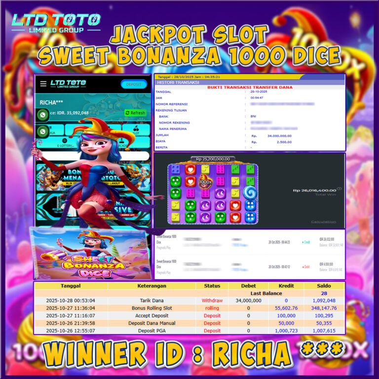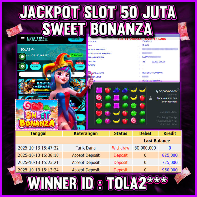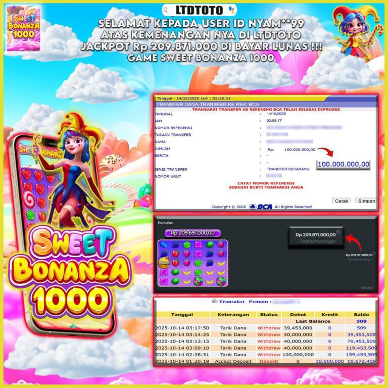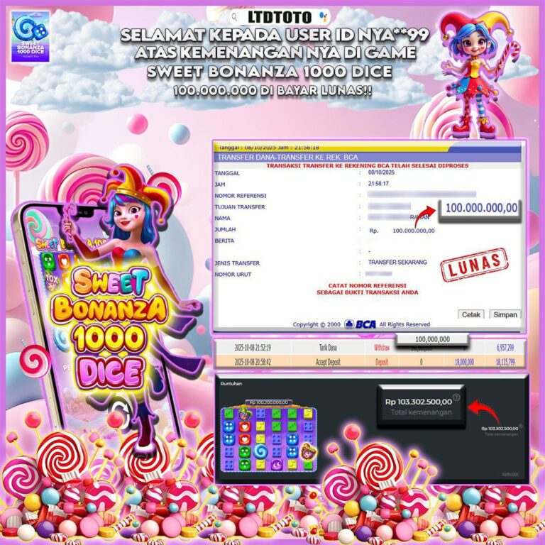LTDTOTO JACKPOT SWEET BONANZA 1000 RP 70.000.000 SABTU 06 DESEMBER 2025 Selamat kepada User id : MANC**G** Telah berhasil mendapatkan kemenangan besar pada permainan SLOT SWEET BONANZA 1000 , kemenangan Sebesar Rp.70.000.000 , Setelah mengisi formulir withdraw dengan kurang waktu hanya 5 – 10 menit pihak LTDTOTO sudah melakukan transfer kepada pemilik User id dan dana sudah dapat…