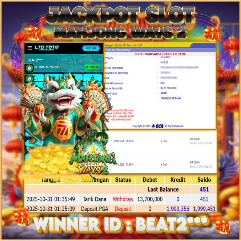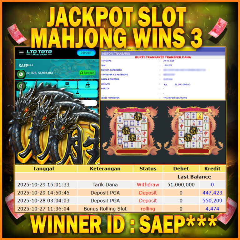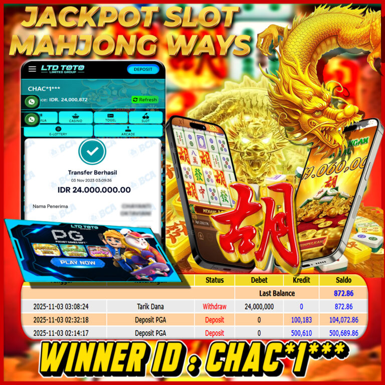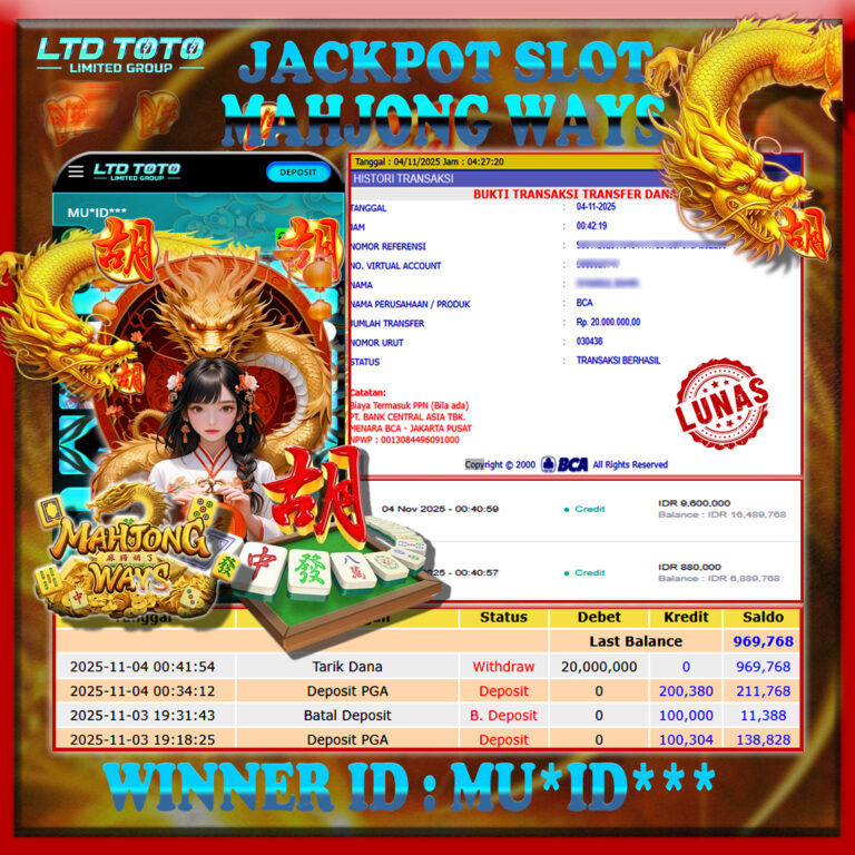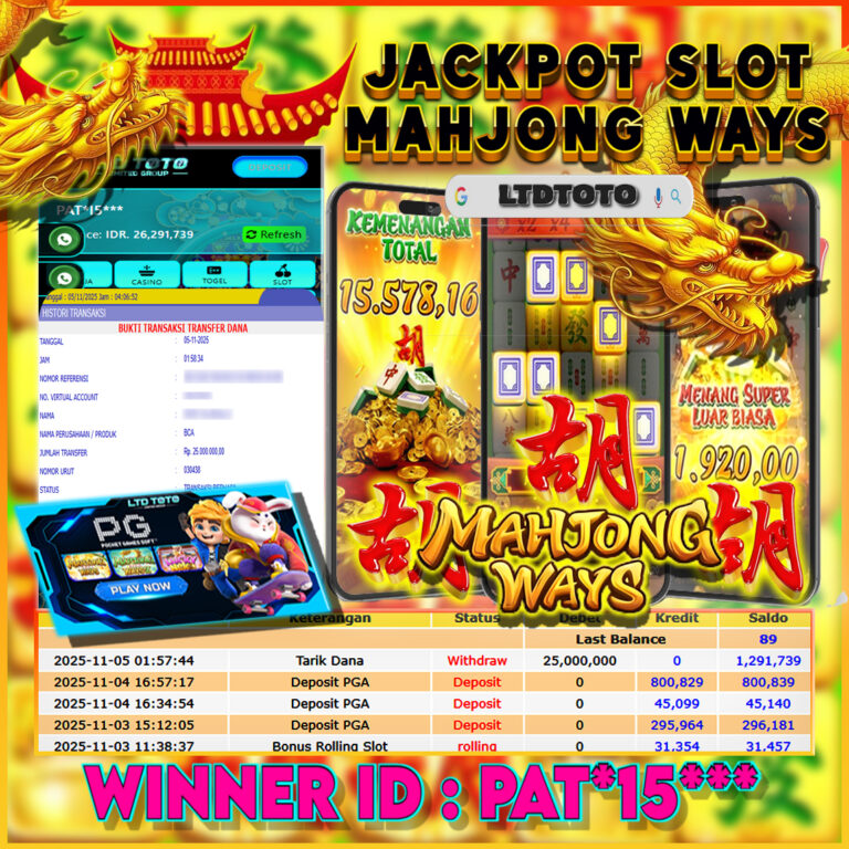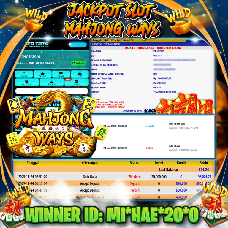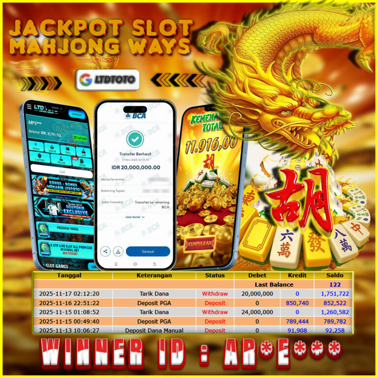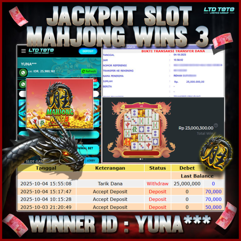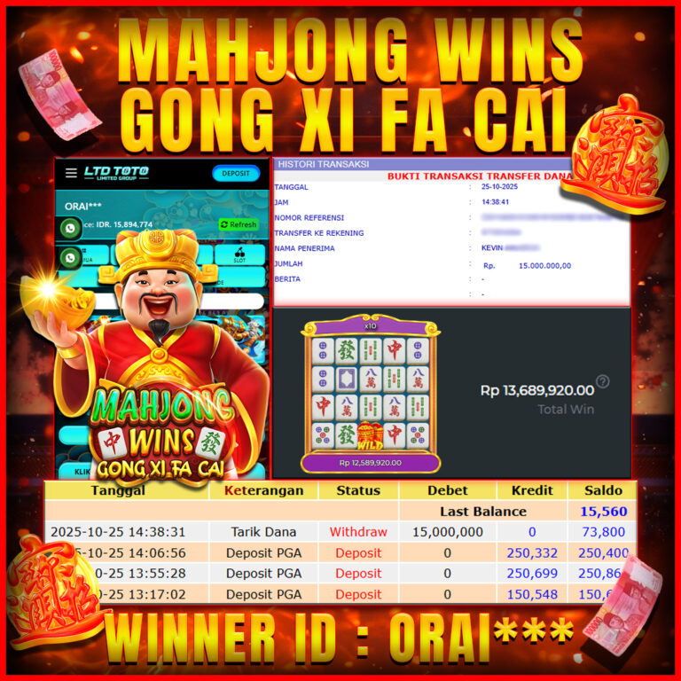LTDTOTO JACKPOT MAHJONG WINS GONG XI FA CAI RP 20.000.000 SABTU 09 NOVEMBER 2025 Selamat kepada User id : GATO*** Telah berhasil mendapatkan kemenangan besar pada permainan SLOT MAHJONG WINS GONG XI FA CAI , kemenangan Sebesar Rp.20.000.000, Setelah mengisi formulir withdraw dengan kurang waktu hanya 5 – 10 menit pihak LTDTOTO sudah melakukan transfer kepada pemilik User…
