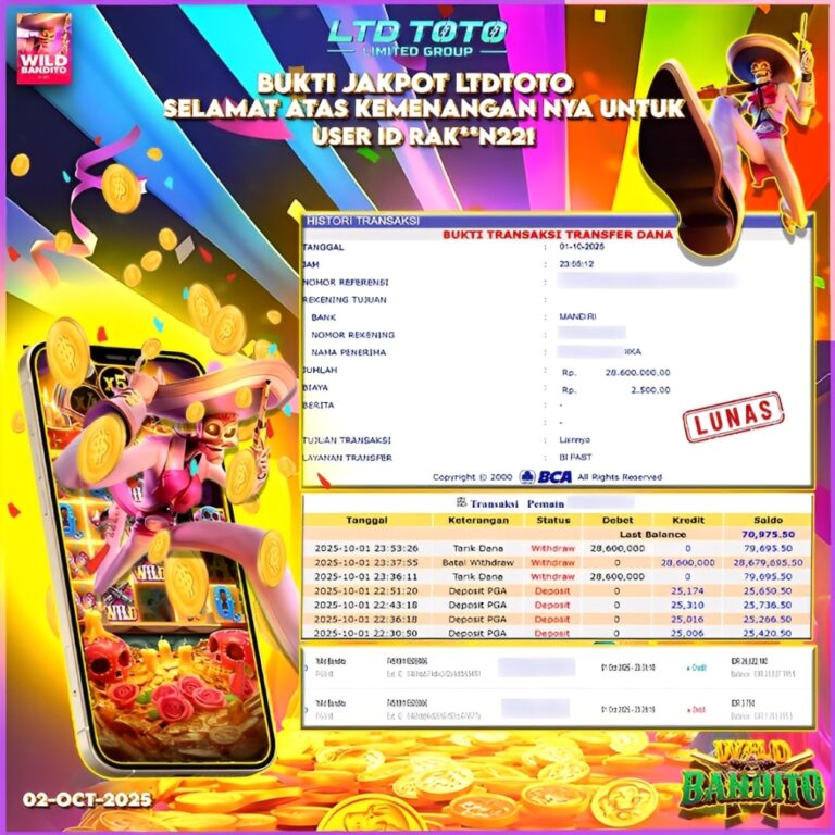 LTDTOTO JACKPOT WILD BANDITO RP 19.000.000 JUMAT 01 AUGUST 2025 Selamat kepada User id : MON***Y31 Telah berhasil mendapatkan kemenangan besar pada permainan WILD BANDITO, kemenangan Sebesar Rp.19.000.000, Setelah mengisi formulir withdraw dengan kurang waktu hanya 5 – 10 menit pihak LTDTOTO sudah melakukan transfer kepada pemilik User id dan dana sudah dapat di cairkan oleh pemenang….