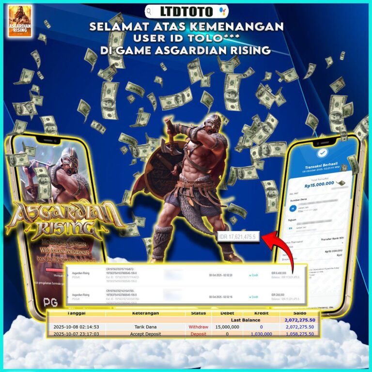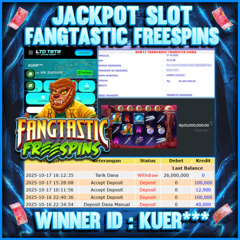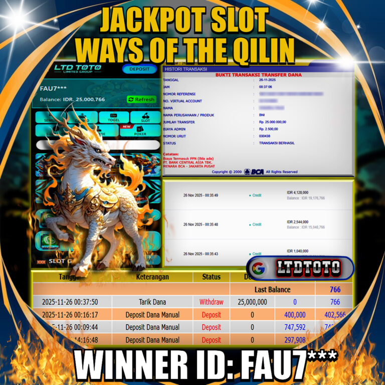 LTDTOTO JACKPOT WAYS OF THE QILIN RP 25.000.000 RABU 26 NOVEMBER 2025 Selamat kepada User id : FAU7*** Telah berhasil mendapatkan kemenangan besar pada permainan SLOT WAYS OF THE QILIN , kemenangan Sebesar Rp.25.000.000, Setelah mengisi formulir withdraw dengan kurang waktu hanya 5 – 10 menit pihak LTDTOTO sudah melakukan transfer kepada pemilik User id dan dana sudah…