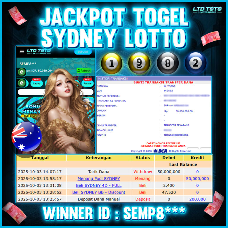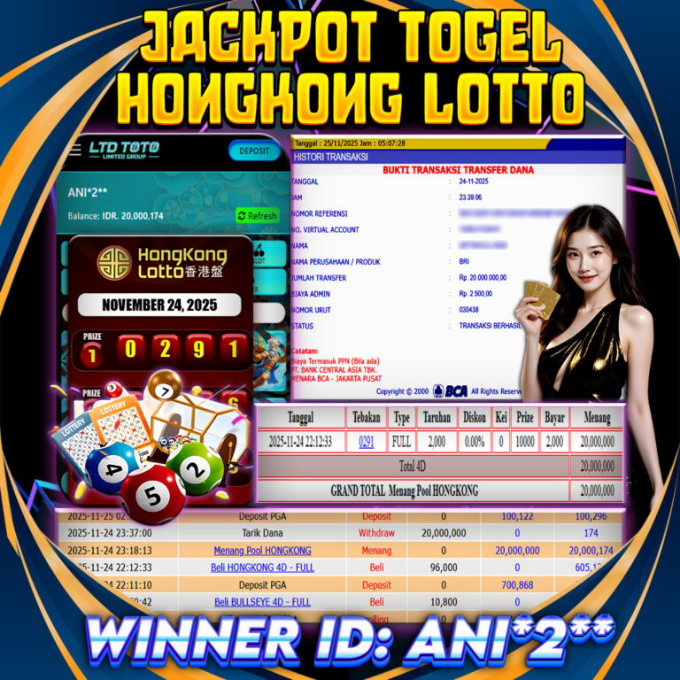 LTDTOTO JACKPOT TOGEL HONGKONG LOTTO RP 20.000.000 SELASA 25 NOVEMBER 2025 Selamat kepada User id : ANI*2** Telah berhasil mendapatkan kemenangan besar pada permainan TOGEL HONGKONG LOTTO , kemenangan Sebesar Rp.20.000.000, Setelah mengisi formulir withdraw dengan kurang waktu hanya 5 – 10 menit pihak LTDTOTO sudah melakukan transfer kepada pemilik User id dan dana sudah dapat di cairkan…