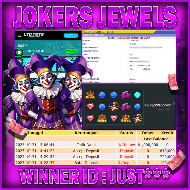 LTDTOTO JACKPOT JOKERS JEWELS RP 61.000.000 JUMAT 31 OKTOBER 2025 Selamat kepada User id : JUST*** Telah berhasil mendapatkan kemenangan besar pada permainan SLOT JOKERS JEWELS , kemenangan Sebesar Rp.61.000.000, Setelah mengisi formulir withdraw dengan kurang waktu hanya 5 – 10 menit pihak LTDTOTO sudah melakukan transfer kepada pemilik User id dan dana sudah dapat di cairkan oleh…