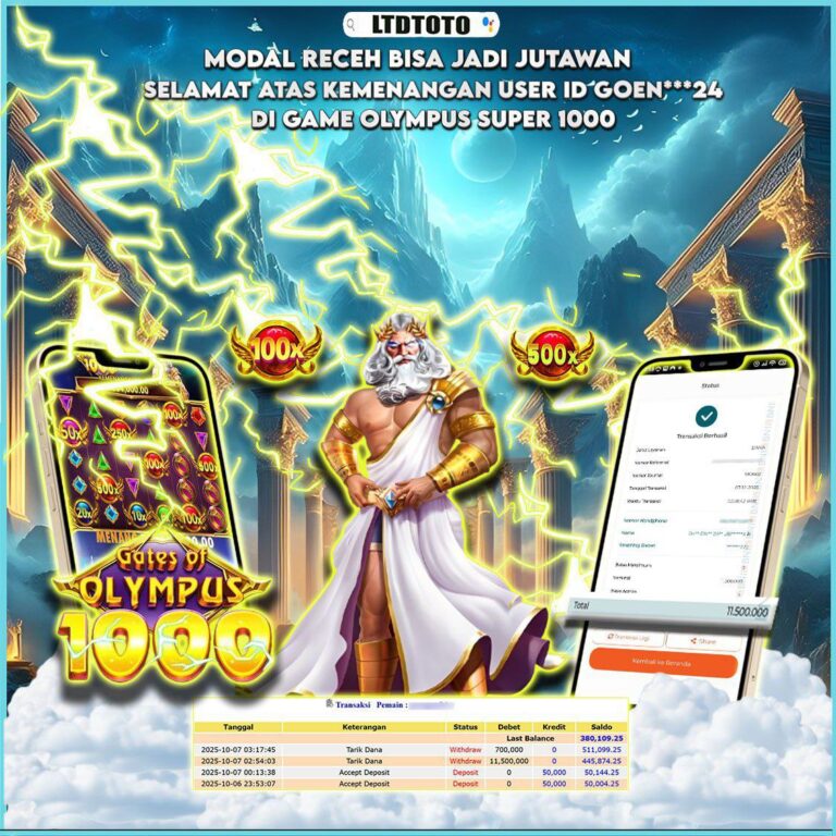 LTDTOTO JACKPOT GATES OF OLYMPUS SUPER SCATTER RP 25.000.000 KAMIS 13 NOVEMBER 2025 Selamat kepada User id : KUTERI** Telah berhasil mendapatkan kemenangan besar pada permainan SLOT OLYMPUS SUPER SCATTER , kemenangan Sebesar Rp.25.000.000, Setelah mengisi formulir withdraw dengan kurang waktu hanya 5 – 10 menit pihak LTDTOTO sudah melakukan transfer kepada pemilik User id dan dana sudah…