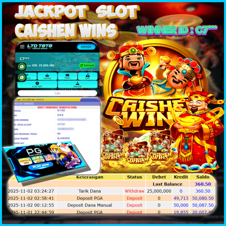 LTDTOTO JACKPOT CAISHEN WINS RP 25.000.000 MINGGU 02 NOVEMBER 2025 Selamat kepada User id : C7*** Telah berhasil mendapatkan kemenangan besar pada permainan SLOT CAISHEN WINS , kemenangan Sebesar Rp.25.000.000, Setelah mengisi formulir withdraw dengan kurang waktu hanya 5 – 10 menit pihak LTDTOTO sudah melakukan transfer kepada pemilik User id dan dana sudah dapat di cairkan oleh…