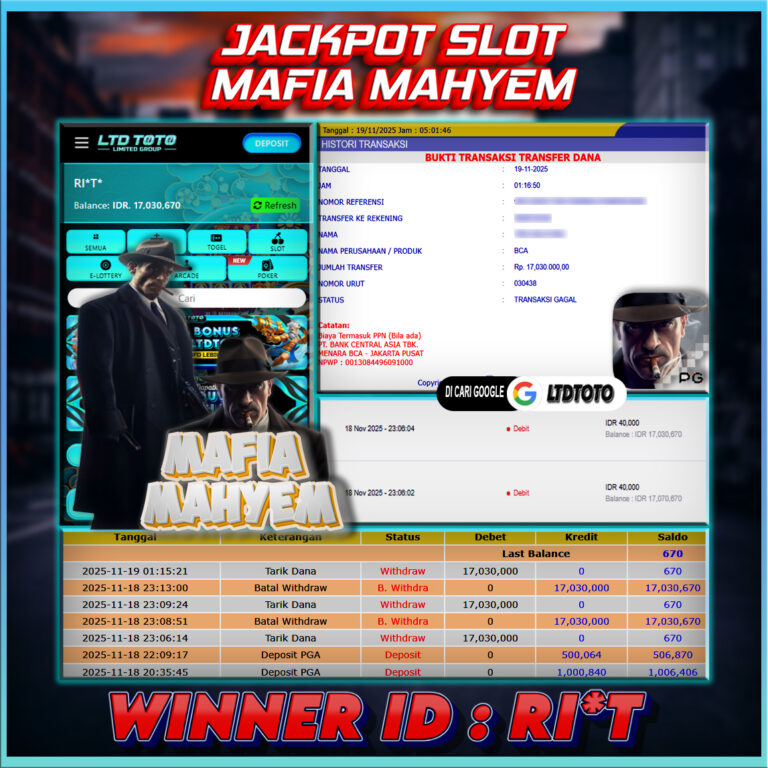 LTDTOTO JACKPOT MAFIA MAHYEM RP 17.030.000 RABU 19 NOVEMBER 2025 Selamat kepada User id : RI*T* Telah berhasil mendapatkan kemenangan besar pada permainan SLOT MAFIA MAHYEM , kemenangan Sebesar Rp.17.030.000 , Setelah mengisi formulir withdraw dengan kurang waktu hanya 5 – 10 menit pihak LTDTOTO sudah melakukan transfer kepada pemilik User id dan dana sudah dapat di…