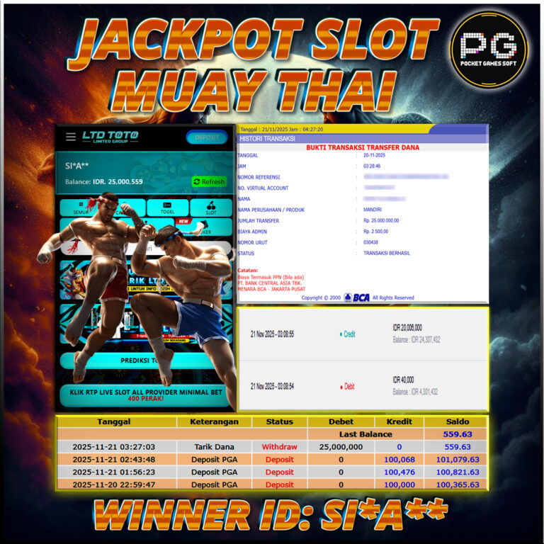 LTDTOTO JACKPOT MUAY THAI RP 25.000.000 JUM’AT 21 NOVEMBER 2025 Selamat kepada User id : SI*A** Telah berhasil mendapatkan kemenangan besar pada permainan SLOT MUAY THAI , kemenangan Sebesar Rp.21.000.000, Setelah mengisi formulir withdraw dengan kurang waktu hanya 5 – 10 menit pihak LTDTOTO sudah melakukan transfer kepada pemilik User id dan dana sudah dapat di cairkan oleh…