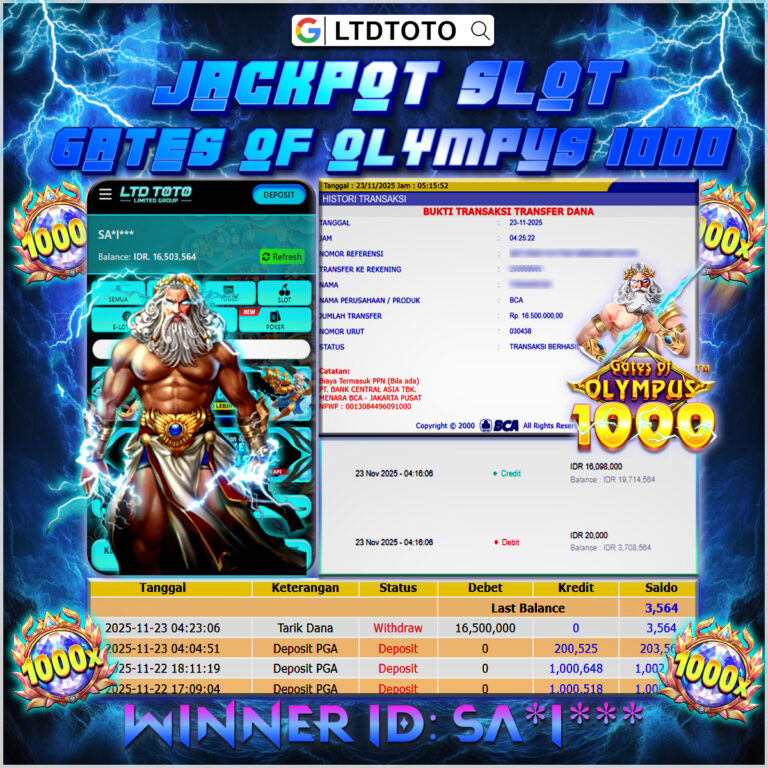 LTDTOTO JACKPOT GATES OF OLYMPUS 1000 RP 16.500.000 MINGGU 23 NOVEMBER 2025 Selamat kepada User id : SA*I*** Telah berhasil mendapatkan kemenangan besar pada permainan SLOT GATES OF OLYMPUS 1000 , kemenangan Sebesar Rp.16.500.000, Setelah mengisi formulir withdraw dengan kurang waktu hanya 5 – 10 menit pihak LTDTOTO sudah melakukan transfer kepada pemilik User id dan dana sudah…