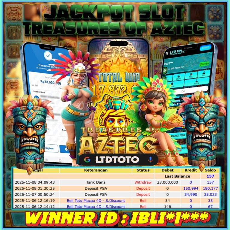 LTDTOTO JACKPOT TREASURES OF AZTEC RP 23.000.000 SABTU 08 NOVEMBER 2025 Selamat kepada User id : IBLI*1*** Telah berhasil mendapatkan kemenangan besar pada permainan SLOT TREASURES OF AZTEC , kemenangan Sebesar Rp.23.000.000, Setelah mengisi formulir withdraw dengan kurang waktu hanya 5 – 10 menit pihak LTDTOTO sudah melakukan transfer kepada pemilik User id dan dana sudah dapat di…