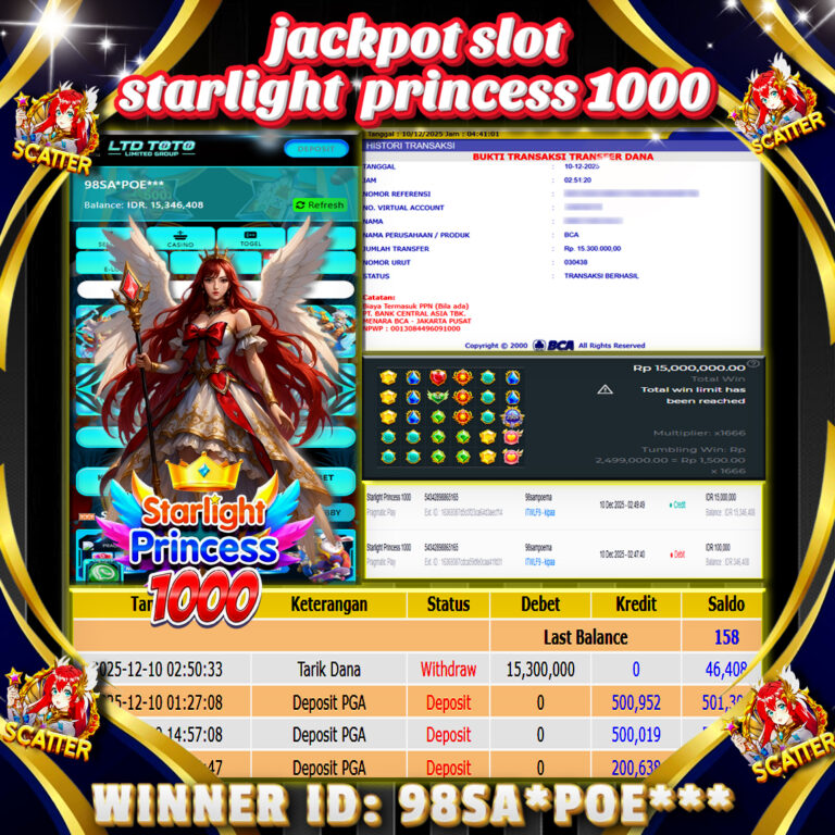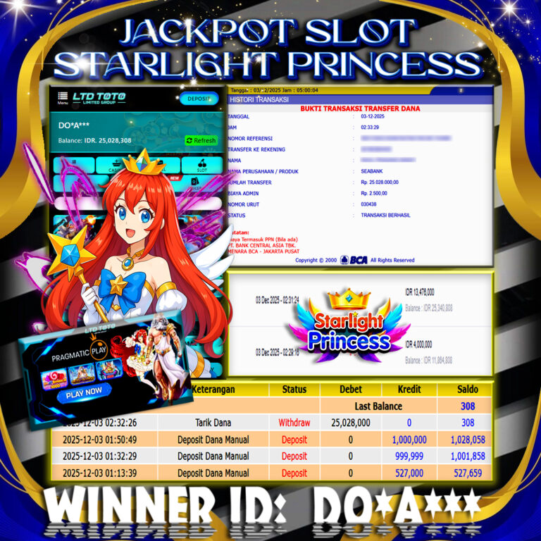 LTDTOTO JACKPOT STARLIGHT PRINCESS 1000 RP 15.000.000 KAMIS 04 DESEMBER 2025 Selamat kepada User id : DO*A*** Telah berhasil mendapatkan kemenangan besar pada permainan SLOT STARLIGHT PRINCESS 1000 , kemenangan Sebesar Rp.15.000.000 , Setelah mengisi formulir withdraw dengan kurang waktu hanya 5 – 10 menit pihak LTDTOTO sudah melakukan transfer kepada pemilik User id dan dana sudah dapat…