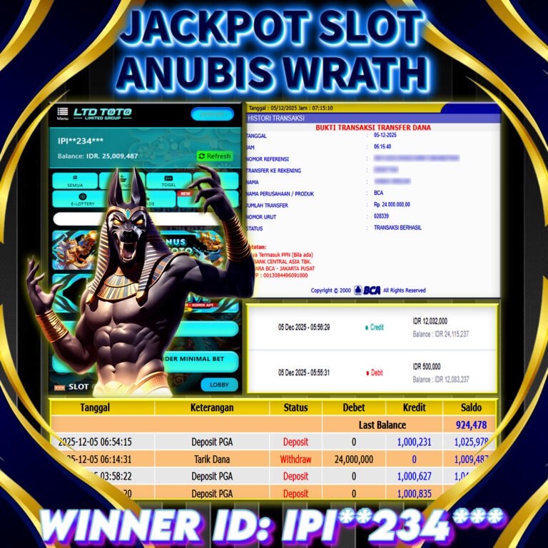 LTDTOTO JACKPOT ANUBIS WRATH RP 24.000.000 JUM’AT 05 DESEMBER 2025 Selamat kepada User id : IPI**234*** Telah berhasil mendapatkan kemenangan besar pada permainan SLOT ANUBIS WRATH , kemenangan Sebesar Rp.24.000.000 , Setelah mengisi formulir withdraw dengan kurang waktu hanya 5 – 10 menit pihak LTDTOTO sudah melakukan transfer kepada pemilik User id dan dana sudah dapat di cairkan…