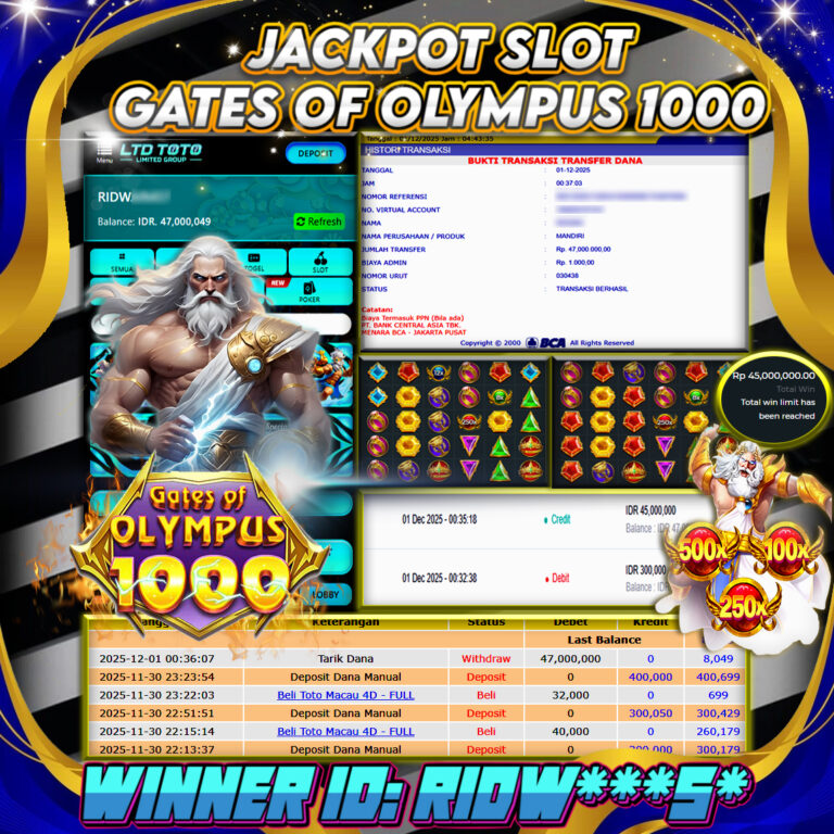 LTDTOTO JACKPOT GATES OF OLYMPUS1000 RP 47.000.000 SENIN 01 DESEMBER 2025 Selamat kepada User id : RIDW***5* Telah berhasil mendapatkan kemenangan besar pada permainan SLOT GATES OF OLYMPUS1000 , kemenangan Sebesar Rp.47.000.000, Setelah mengisi formulir withdraw dengan kurang waktu hanya 5 – 10 menit pihak LTDTOTO sudah melakukan transfer kepada pemilik User id dan dana sudah dapat di…