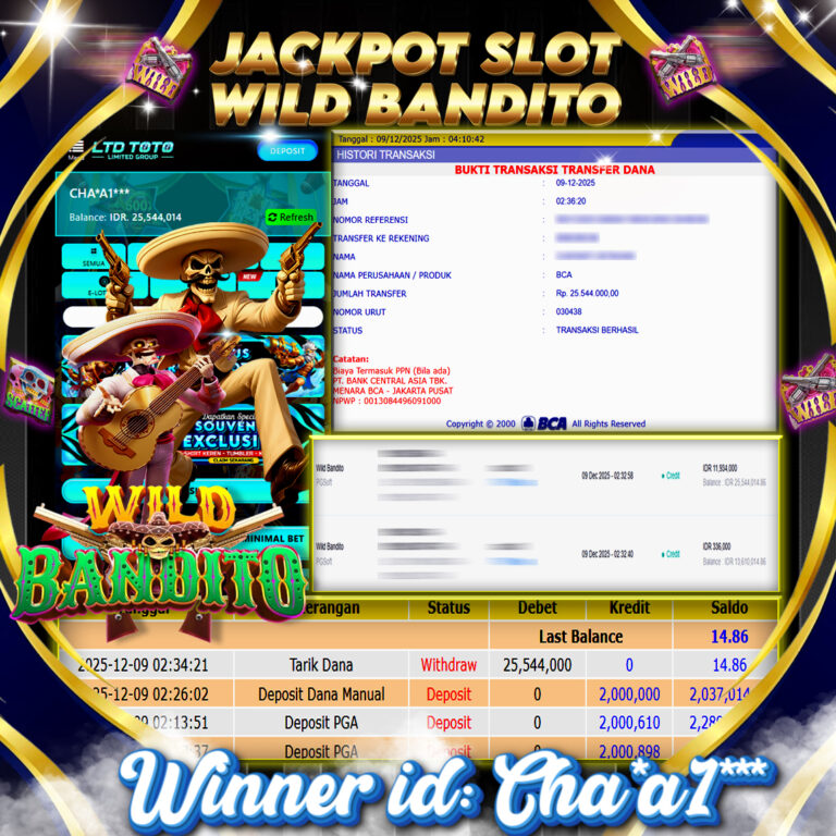 LTDTOTO JACKPOT WILD BANDITO RP 15.000.000 DI BAYAR LUNAS!