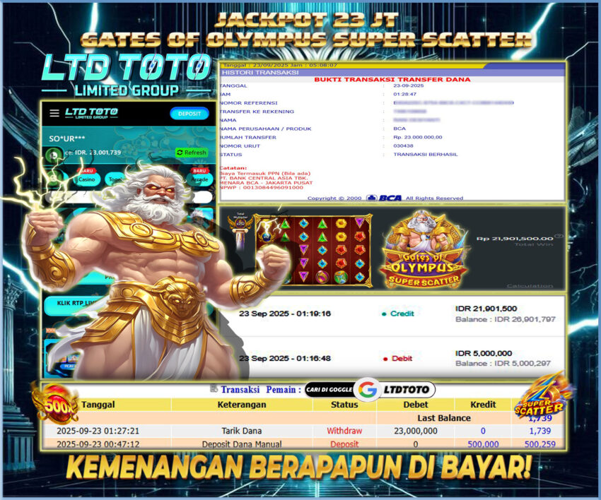 LTDTOTO JACKPOT SLOT GATES OF OLYMPUS SUPER SCATTER RP 23.000.000 SELASA 23 SEPTEMBER 2025