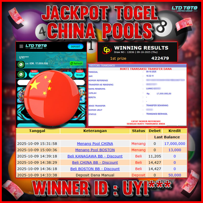 LTDTOTO JACKPOT TOGEL CHINA POOLS RP 17.000.000 KAMIS 09 OKTOBER 2025